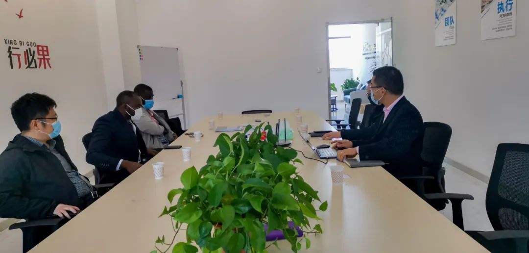 On the morning of October 18, accompanied by Mr. Zhang Bochun, head of the Outreach Department of Jiangsu Chamber of Commerce of Importers and Exporters (JCCI), Mr. Musa Niasi, CEO of Gambian afroBYTE and Mr. G. Samekong Carlos, CEO of Cameroonian Carlsky International Trading Company, visited CHTC KINWIN. Mr. Li Guojun, assistant to the chairman of the company, and Mr. Li Chao, head of Nanjing Intelligent EV Bus New Energy Vehicle Research Institute, warmly received the guests, and the guests and hosts carried out extensive exchanges on the cooperation of new energy projects.